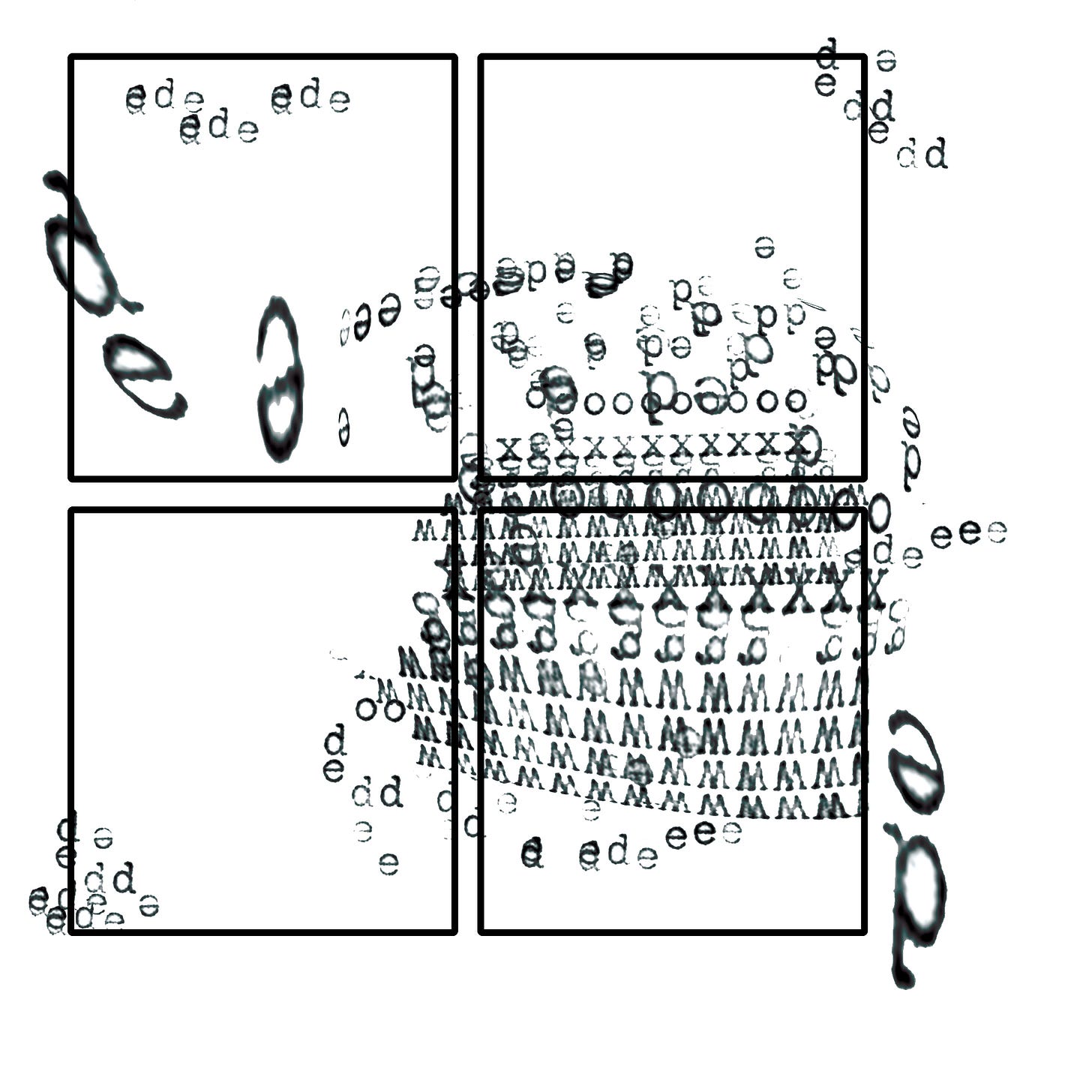 When I have a chance in the waiting room, I’ve been making little visual pieces to have the centring effect of making something. Of creating some little beauty. Of making marks to somehow speak to the world. They don’t respond per se to the emotional weight of the moment excepting that making marks, but being “cautiously optimistic” about things is always helpful. At home, I type out some figures on a typewriter and home and load the scans into the computer which I bring to the hospital. I’ve called them Typewriter Rituals because making them is a small ritual.